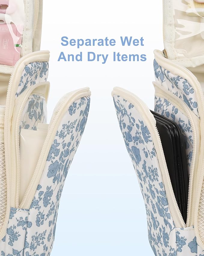 Relavel Hanging Toiletry Bag for Women Travel Makeup Bag Cosmetic Organizer Toiletries Bag for Travel Size Essentials Accessories Shower Caddy Bag for Bathroom Beach Gym, Floral Print