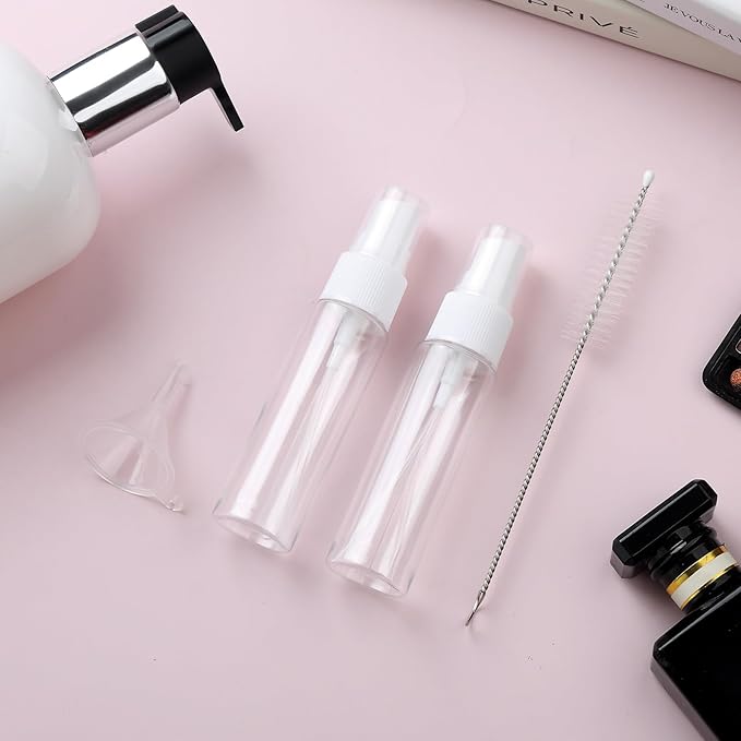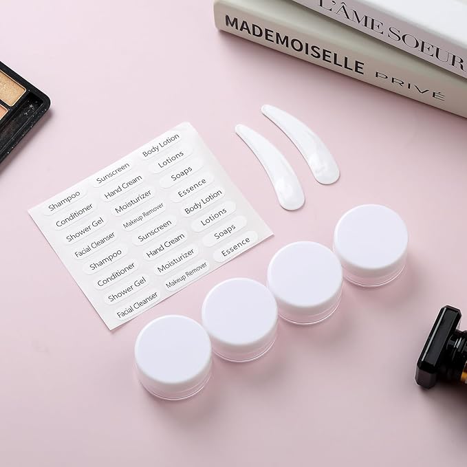 - Useful Travel Accessories: This is a nice assortment of travel containers in a useful zip case. ( Come in 4 Travel Bottles+4 Travel Jars+2 Spray Bottles+2 Scoopers+1 Funnel+1 Clean Brush + 1 Page Label + 1 Clear Toiletry Bag ) Multiple ones allow you take along different beauty products and toiletries according to your requirement