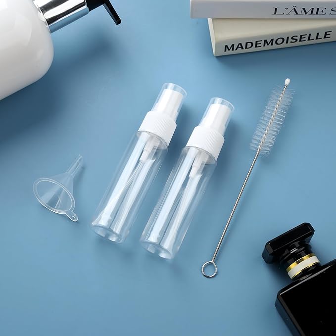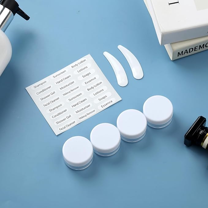 - Useful Travel Accessories: This is a nice assortment of travel containers in a useful zip case. ( Come in 4 Travel Bottles+4 Travel Jars+2 Spray Bottles+2 Scoopers+1 Funnel+1 Clean Brush + 1 Page Label + 1 Clear Toiletry Bag ) Multiple ones allow you take along different beauty products and toiletries according to your requirement