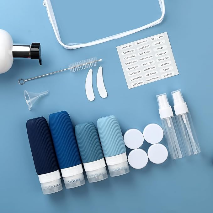 16 Pack Travel Bottles Set, TSA Approved Leak Proof Silicone Squeezable Containers for Toiletries, Refillable Travel Accessories for Conditioner, Shampoo, Lotion & Body Wash Accessories
