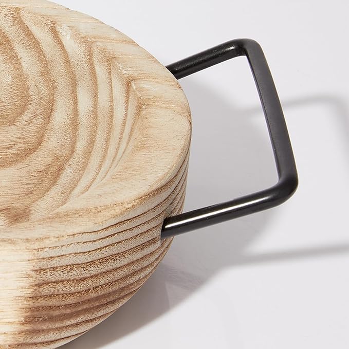 - 【Rustic Round Tray】 This 12.6”x8.46”x2.16” round wooden tray features a natural wood finish with visible grain and two black handles, adding a rustic and elegant accent to any space. Perfect for farmhouse decor, wood trays home decor, or rustic home settings