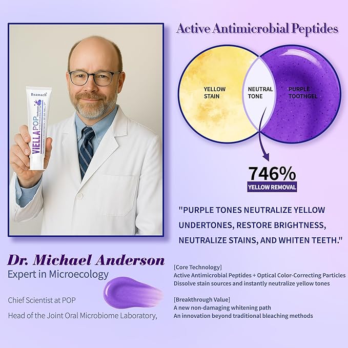 - 【Triple Whitening & Stain Removal】Purple whitening foam toothpaste containing a high concentration of whitening beads, one brush blast releases the color repair factor to fully cover the tooth surface; the patented active antimicrobial peptide combined with the composite color-absorbing particles dissolve tartar deep into the teeth, and the foam turns blue to witness the process of whitening; the visible violet color repair particles accurately neutralize the yellow pigment, correcting the yellowing of the teeth, and restoring the natural bright white smile