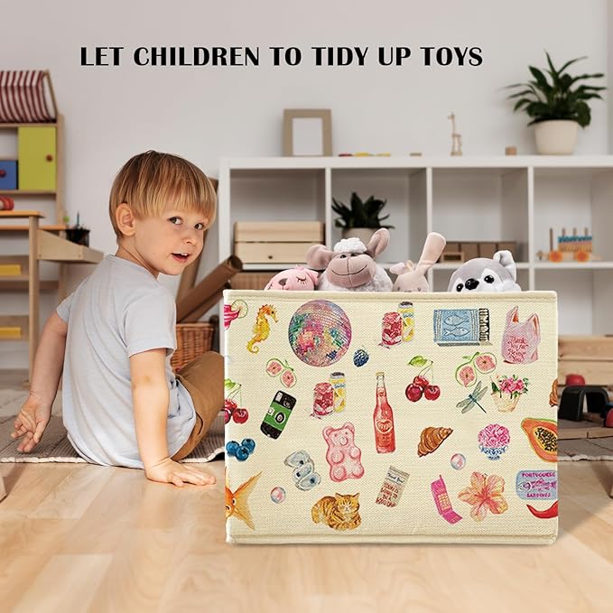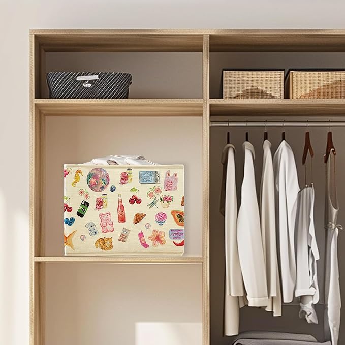 Preppy Y2K Aesthetic Storage Basket Bins With Handles for Girls Kids, Preppy Y2K Aesthetic Foldable Organizer Basket Toybox for Girls Room Nursery Bedroom Bathroom Clothes Toys Books