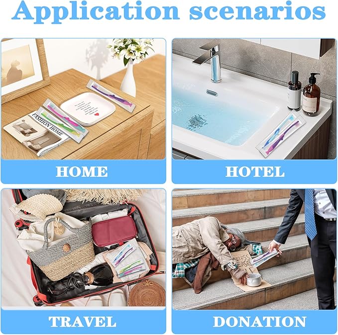 - Individually packaged bulk toothbrushes: These bulk toddler toothbrushes are convenient individually packaged for camping, tourism, hotels, schools, camps, day care; Enough for you to share with family, friends and guests; These toothbrushes are small and light, and you can carry them around without taking up space.