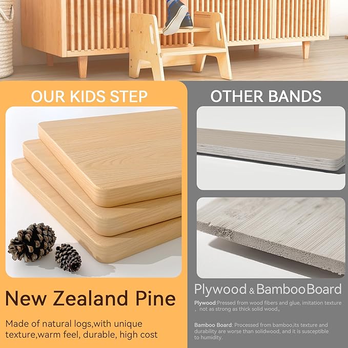 - Multi-Use Stepstool :300lb weight capacity wooden step stool isn't just for toddlers but also safely holds adult. Perfect for helping kids reach sinks while sturdy enough for parents to grab top-shelf items. One stool, endless uses for the whole family