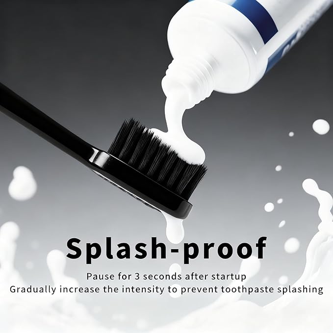- Splash-Proof Design for Stress-Free Brushing: Start brushing effortlessly. The sonic toothbrush vibrates gently within 3 seconds of powering on to prevent toothpaste splatter, keeping your sink area clean and eliminating the rush