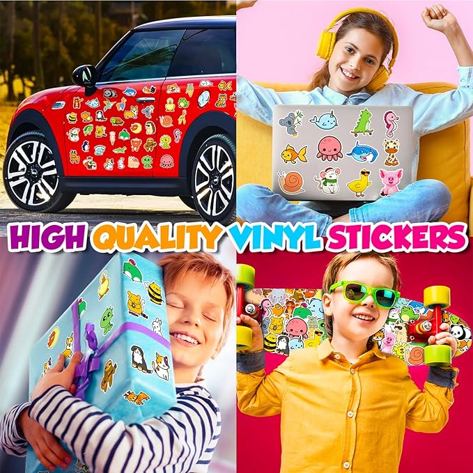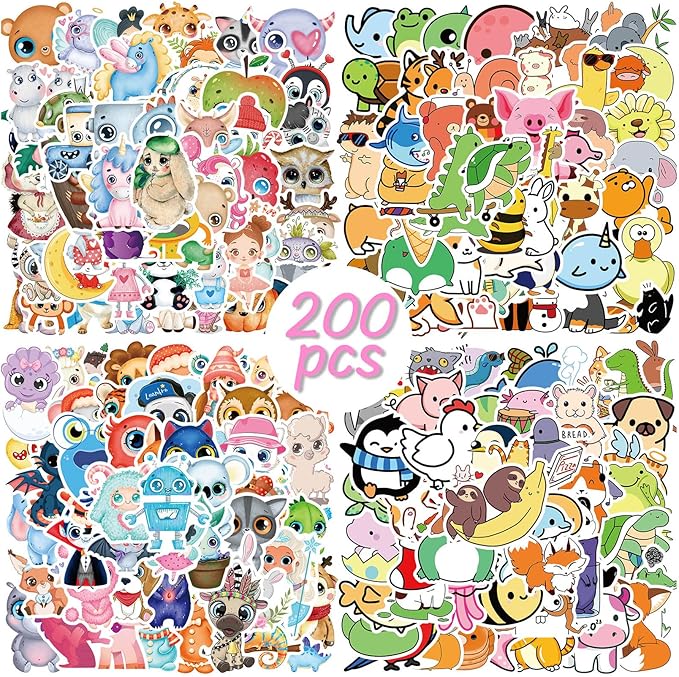 Cartoon Animal Stickers for Kids 200 Pcs/Pack, Waterproof Vinyl Stickers for Girls Boys Classroom Prizes - Laptops, Notebooks, Water Bottles, Skateboard (Animal)