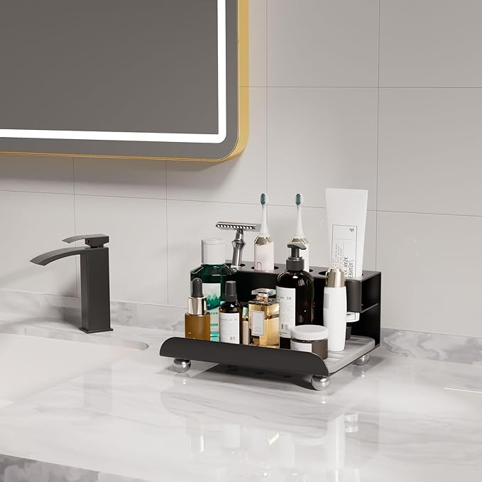 - Holds Most Bathroom Essentials: Ample storage keeps toothbrushes, toothpaste, floss, razors, mouthwash, and more organized and within reach on your countertop