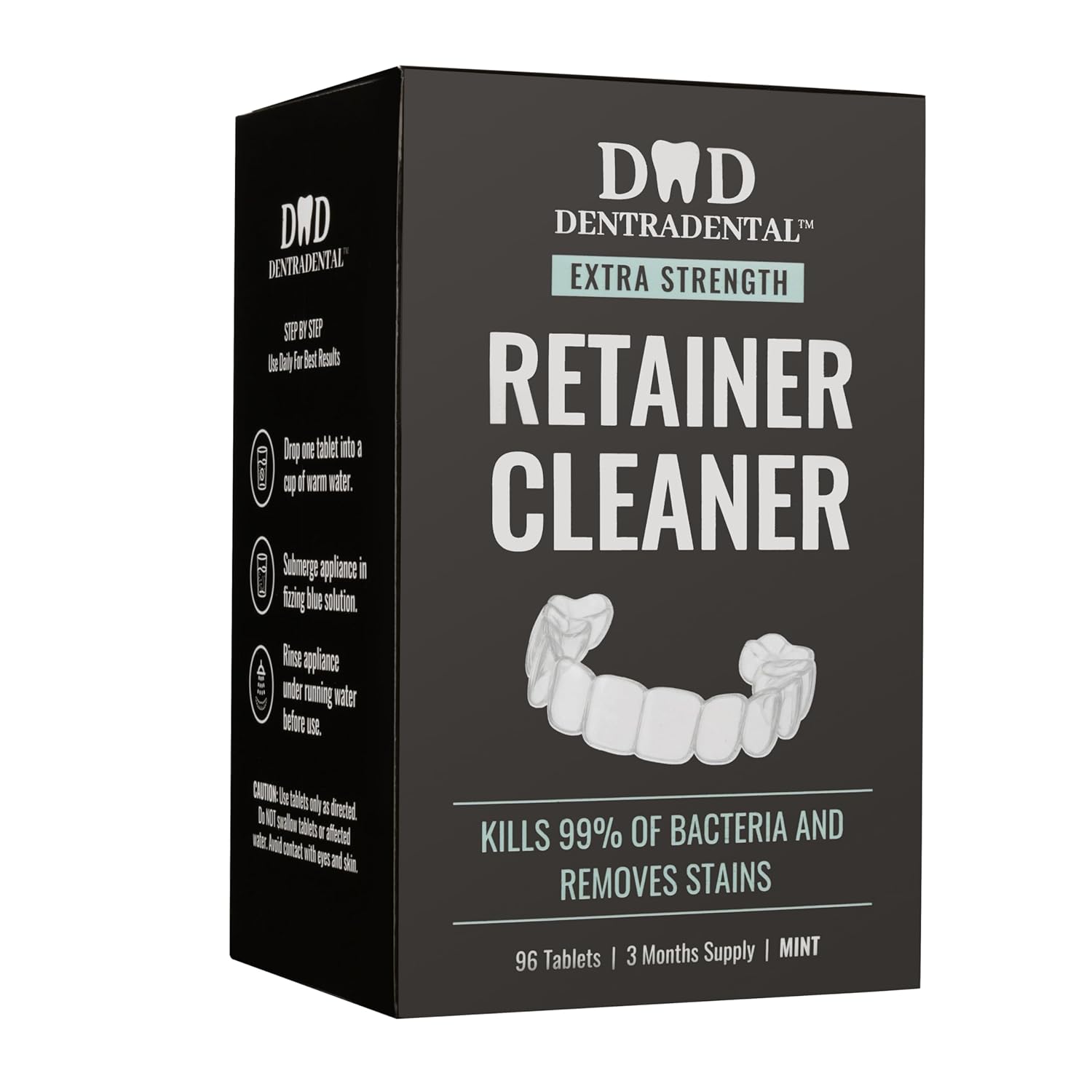 - Comprehensive Appliance Cleaning: DENTRA DENTAL cleaning tablets dissolve stains and buildup from retainers, aligners, and mouth guards, helping keep every device clear and fresh after each soak.