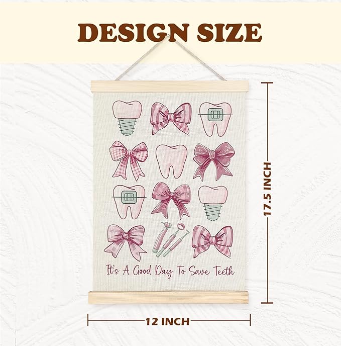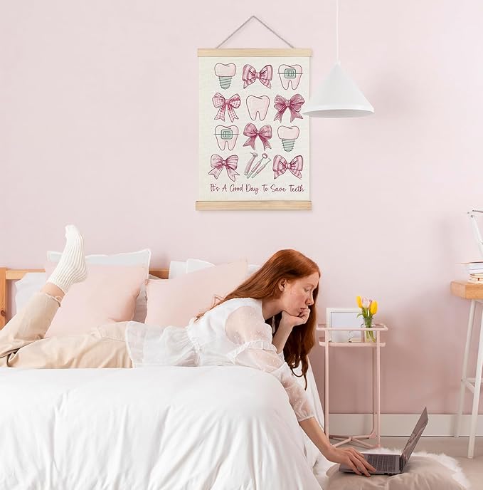 Yomisex Dentist Gifts Wall Art Poster, Dental Hygienist Assistant Office Gifts for Women, Pink Teeth Stuff Wall Art Framed for Dentist Office Home Decor, 12x16 Inch-(Pink)