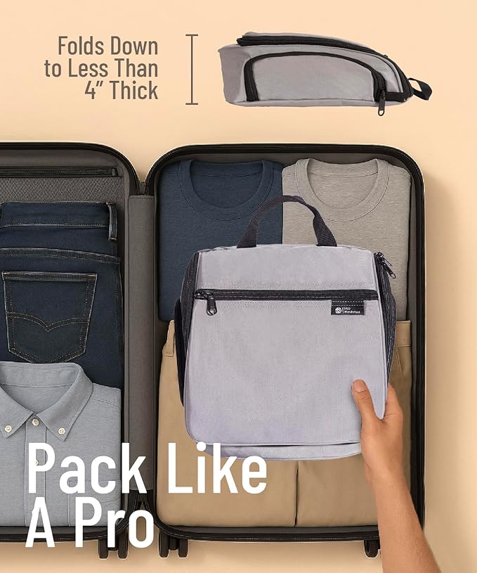 - HANGING HOOK:: The XXL metal swivel hook allows you to hang the bag anywhere, saving valuable counter space. It's perfect for use in hotels, bathrooms, or even on a camping trip