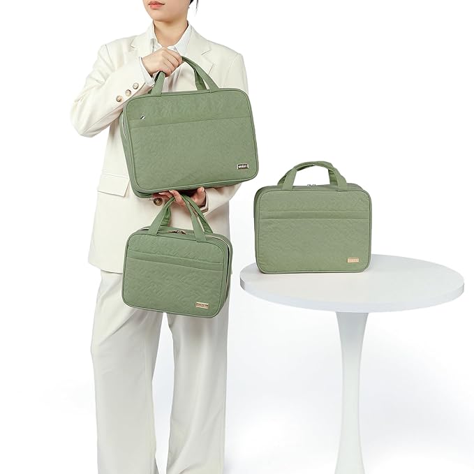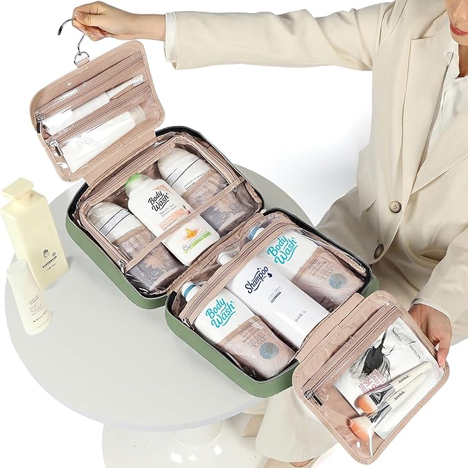 NISHEL Travel Toiletry Bag for women, Portable Hanging Organizer for Family-Sized Shampoo, Conditioner, Brushes Set, Makeup Accessories, Extra Large Size, Green