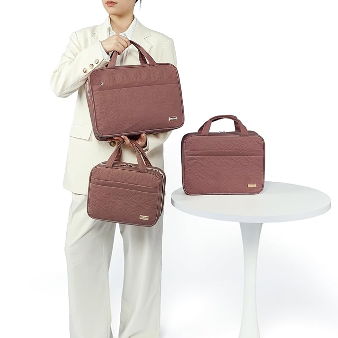 NISHEL Travel Toiletry Bag for women, Portable Hanging Organizer for Family-Sized Shampoo, Conditioner, Brushes Set, Makeup Accessories, Extra Large Size, Rosewood-Pink