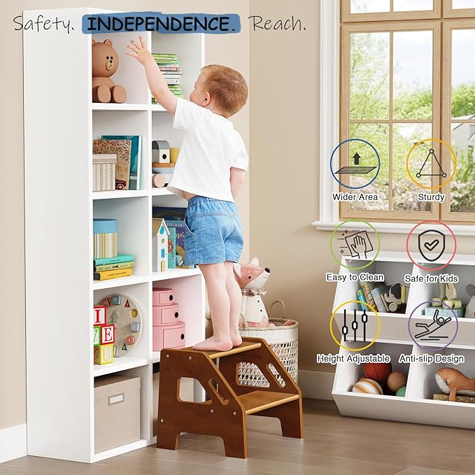 - 【Best Assistance for Toddlers】The wooden step stool for toddlers provides the best assistance for your growing toddlers. You can use toddler stool for potty training on the toilet or use for reaching bathroom sink to brush teeth and wash hands, and just about anywhere else that needs a little boost to reach by themselves.