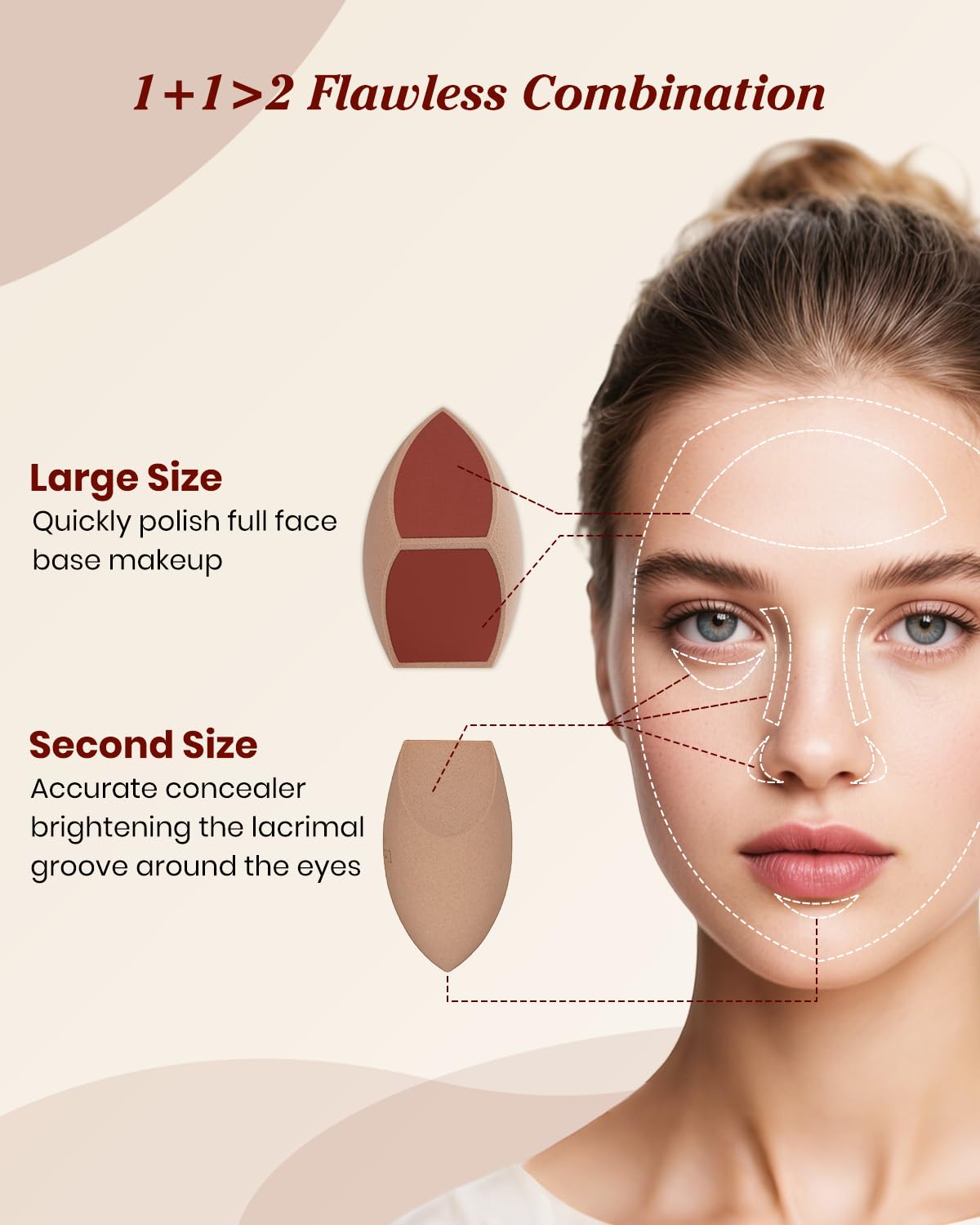 - ✅【Multi-Use Set】Soft makeup sponges set perfect for blending, foundation, concealer, BB cream, blush, bronzer, highlighter and more. Effortlessly blends liquid and cream for a flawless finish.Large one and small one can mix and match use for makeup.