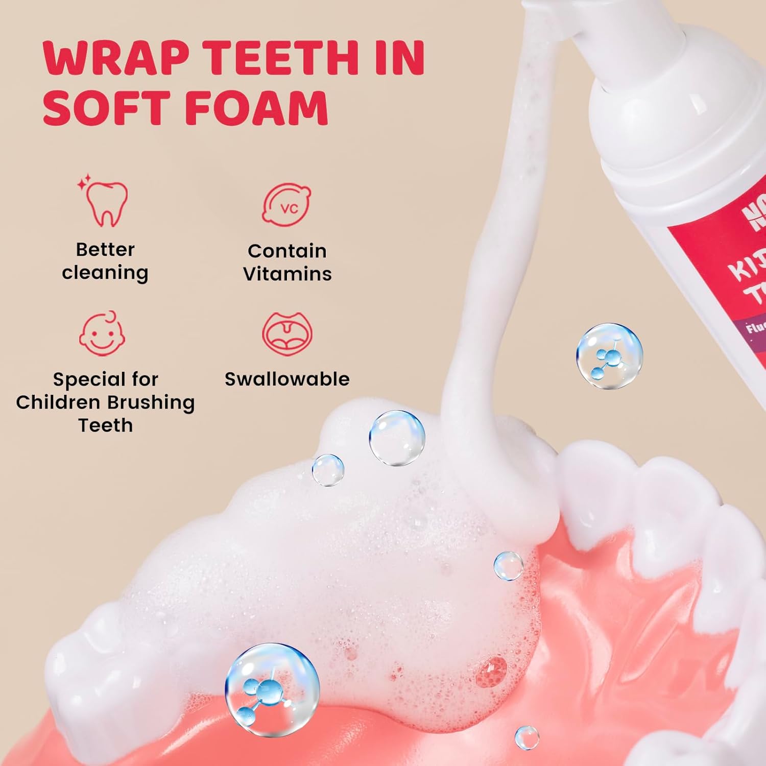 NOHOO Fluoride Free Foam Toothpaste Kids Fruit Flavour,Natural Training Toothpaste for Baby Toddler Children Oral Cleaning and Cavity Protection(2 Strawberry + 2 Watermelon)
