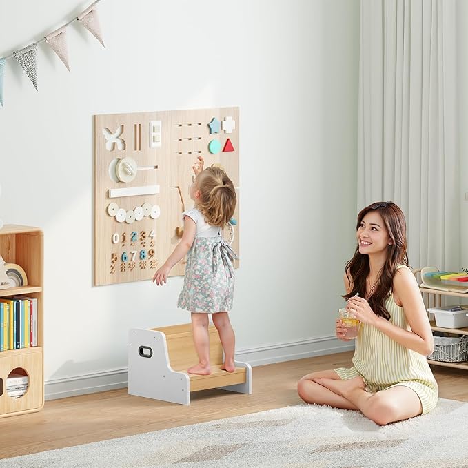 - Safety You Desire: For those parents struggling with daily training and and getting your kid to reach. The thick non-slip pads on the bottom grips the ground when the kids go up and down the steps. Wooden step stool ensures load-bearing capacity, which is perfect for carrying children's weight