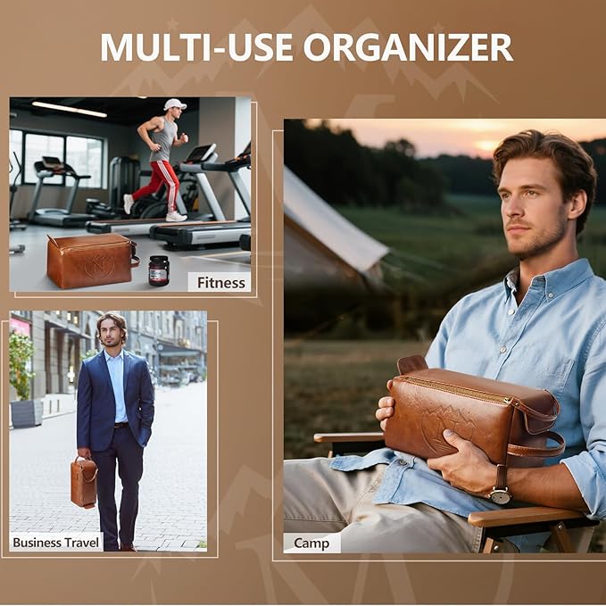 - β‘ 1-SEC OPENING & MILITARY-GRADE DURABILITY : Mens travel bag toiletry kit features dual antique bronze zippers + magnetic auto-seal closure for water resistance. Crafted for mens toiletries bag demands: Waterproof PU leather with reinforced stitching survives gym, camping, globetrotting. Built as a personalized toiletry bag for men that endures.