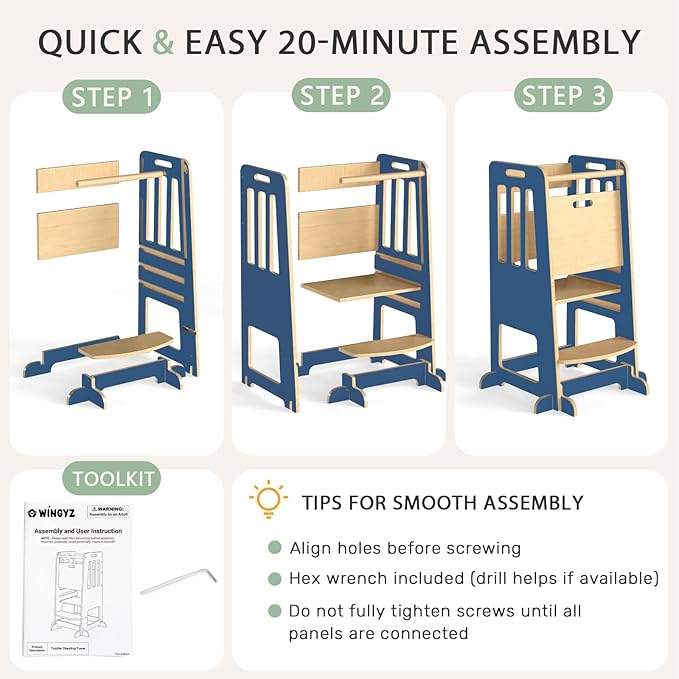 - Quick & Hassle-Free Assembly: Say goodbye to complicated setups! With numbered parts and included tools, this stool can be fully assembled in about 20 minutes by following the simple instructions. Pro tip: Each stool comes with adjustable bottom foot pads—if your floor isn't perfectly even, just tweak them for a stable, wobble-free finish. Easy, fast, and ready for your little helper to climb safely!