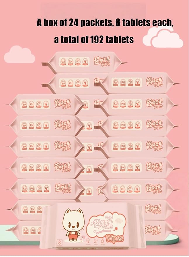 - COMPACT SIZE: Each pack contains 8 wipes for easy portability, with 24 packs totaling 192 wipes - perfect for travel, diaper bags, or on-the-go use
