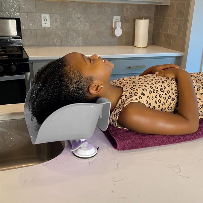 Shampoo Buddy Portable Hair Wash Basin for Children, Toddlers, Kids, Teens | Portable Shampoo Bowl for use on Bathtub or Sink (Light Grey)