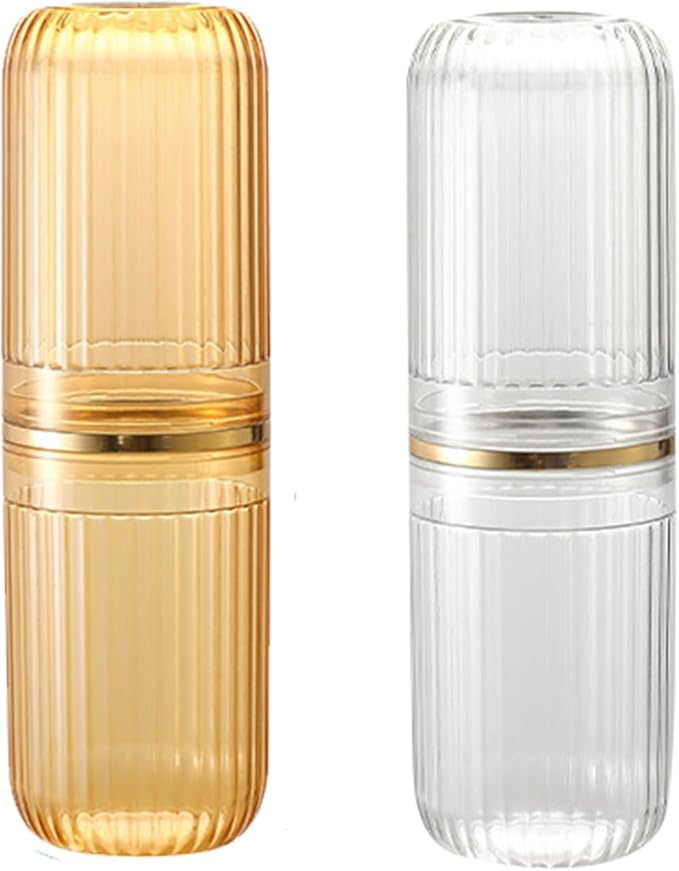 Travel Toothbrush Cup Case, Toothbrush Travel Container Portable Travel Toothbrush Holder Toothpaste Storage for School Camping Business Trip Bathroom (White,Gold)