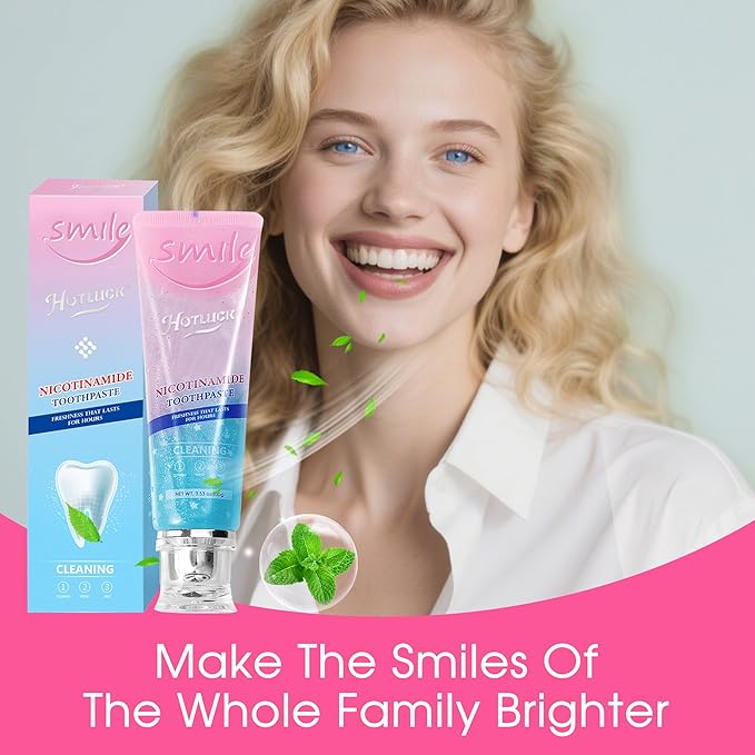 - Whiteness & Brightness: Hotluck Niacinamide Whitening toothpaste is formulated with multiple cleansing ingredients to deliver a gentle yet thorough clean, removing tooth stains, keeping enamel safe, leaving your teeth gleaming and enhancing oral health.