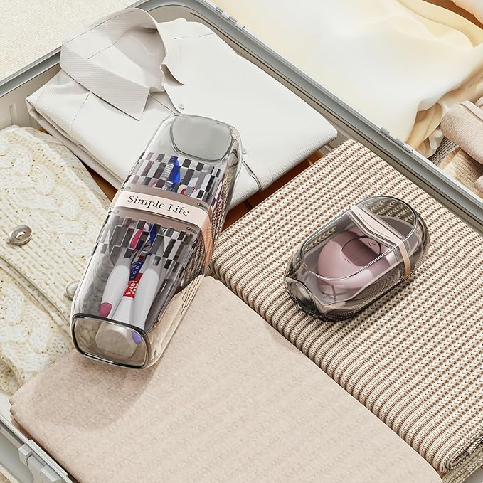 - Portable Toothbrush and Soap Case: This cute travel toothbrush holder and soap case is small, doesn't take up too much space, and can be carried around for easy travel. The soap box contains a drain soap dish to prevent soap bubbles from softening in the water.