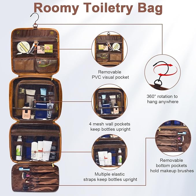 - Thoughtful Design for Every Journey: This toiletry bag is designed with the traveler in mind. Multiple internal pockets and 2 external zipper pocket keep your essentials organized, while a rotating hook and durable handle make it easy to carry. The spacious interior ensures you have room for all your toiletries, making it the perfect companion for short trips or long adventures.