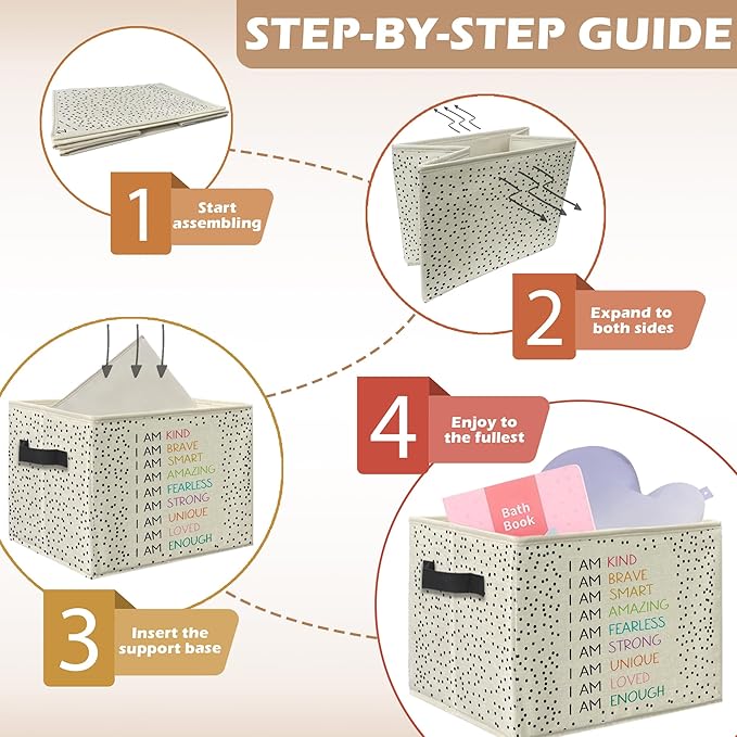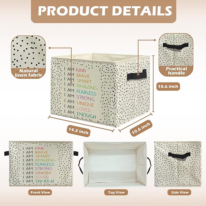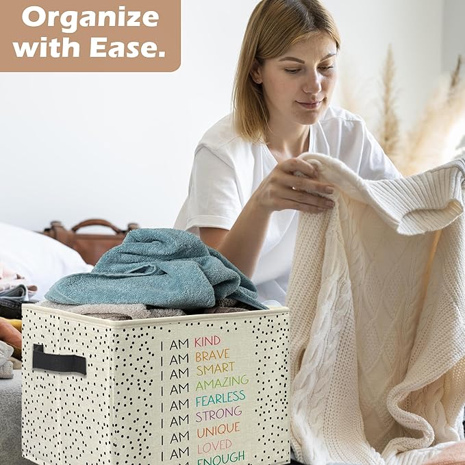 Boho Colorful Inspirational Storage Bins, Positive Affirmation Gifts for Kids Collapsible Storage Box Laundry Basket with Handle for Playroom Home Bedroom Bathroom Clothes Toys Books