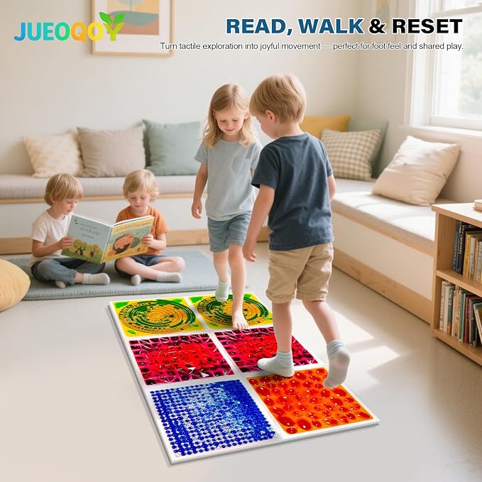 - Multi-Tile Motion Focus: As kids step from one tile to the next, the swirling liquid moves beneath their feet while textured tops provide feedback for mindful movement. Wearing socks or soft shoes adds comfort for smooth activity shifts