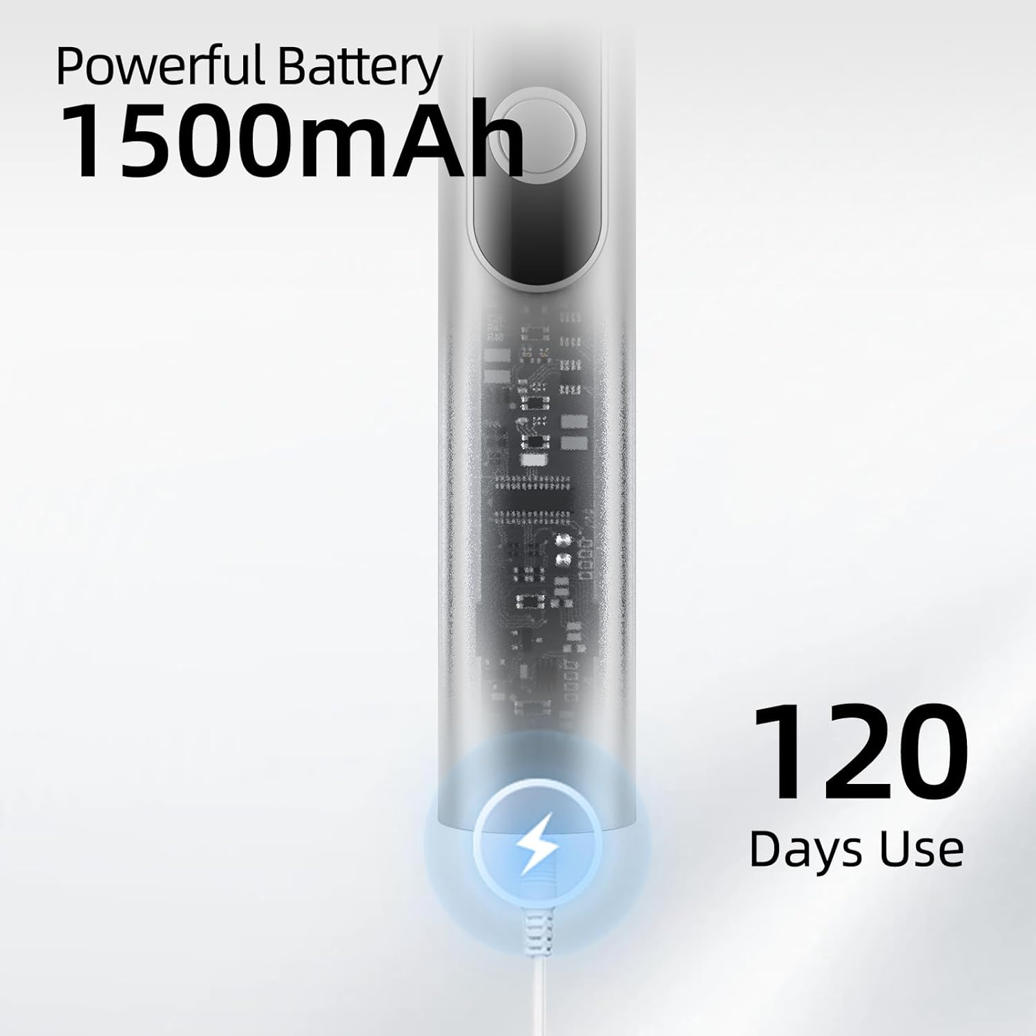 - Over 30 days of battery life, IPX8 waterproof - can be used normally for 30 days (2 times a day) on a single full charge, with a large battery capacity that alerts when the battery is low and automatically shuts off when fully charged. It also has USB fast charging function. In addition, IPX8 waterproof allows you to enjoy the pleasure of brushing your teeth while taking a shower, and supports body washing, far exceeding IPX7 waterproof toothbrushes on the market