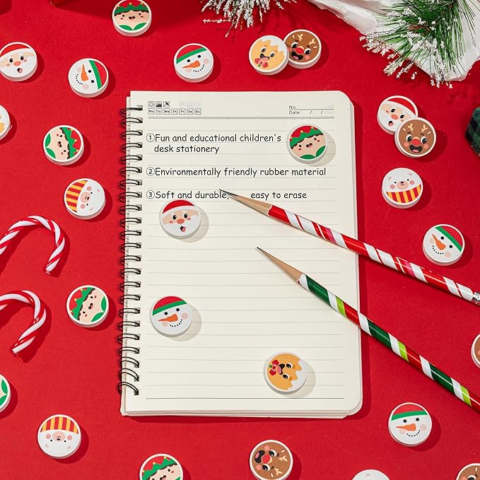 - Reliable Material: Made from premium rubber, our cute Christmas cartoon pencil erasers effectively remove handwriting without leaving a trace. Designed for long-lasting use, these erasers are an excellent choice for any stationery set.