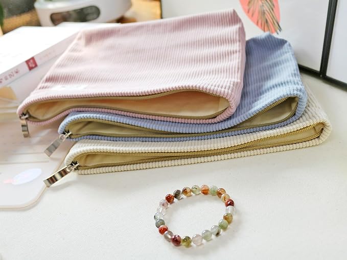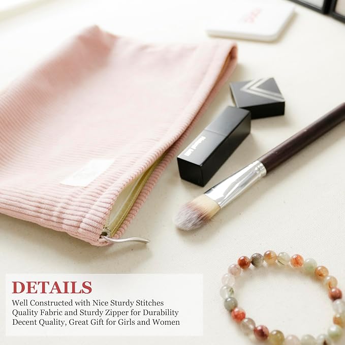 - Soft Corduroy and Durable Lining: crafted from premium corduroy and lined with sturdy canvas for added structure; smooth-glide zippers and reinforced stitching make this washable makeup pouches stylish, functional, and long-lasting