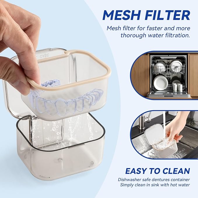 - Hygienic 3-Tier Design: Features a retainer case with vent holes for proper airflow, silicone-sealed lid, and removable strainer basket. This mouthguard case prevents direct contact with solutions while functioning as a retainer cleaning case.