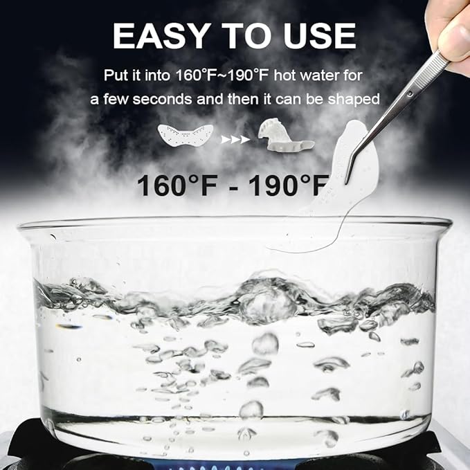 - EASY-TO-FIT NIGHT GUARD: Simply immerse in 180℉ hot water for 1 minute to mold it to your teeth. If the fit isn’t perfect, reheat and reshape as many times as needed until you achieve a custom, comfortable fit tailored to your mouth