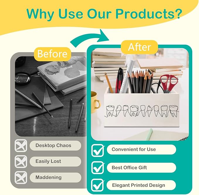 Dentist Gifts Pen Pencil Holder for Desk, Dental Office Decor, Dental Hygienist Gifts Wooden Box Decorative Sign for Dentist Office Clinic Hospital Desk Tabletop Decor