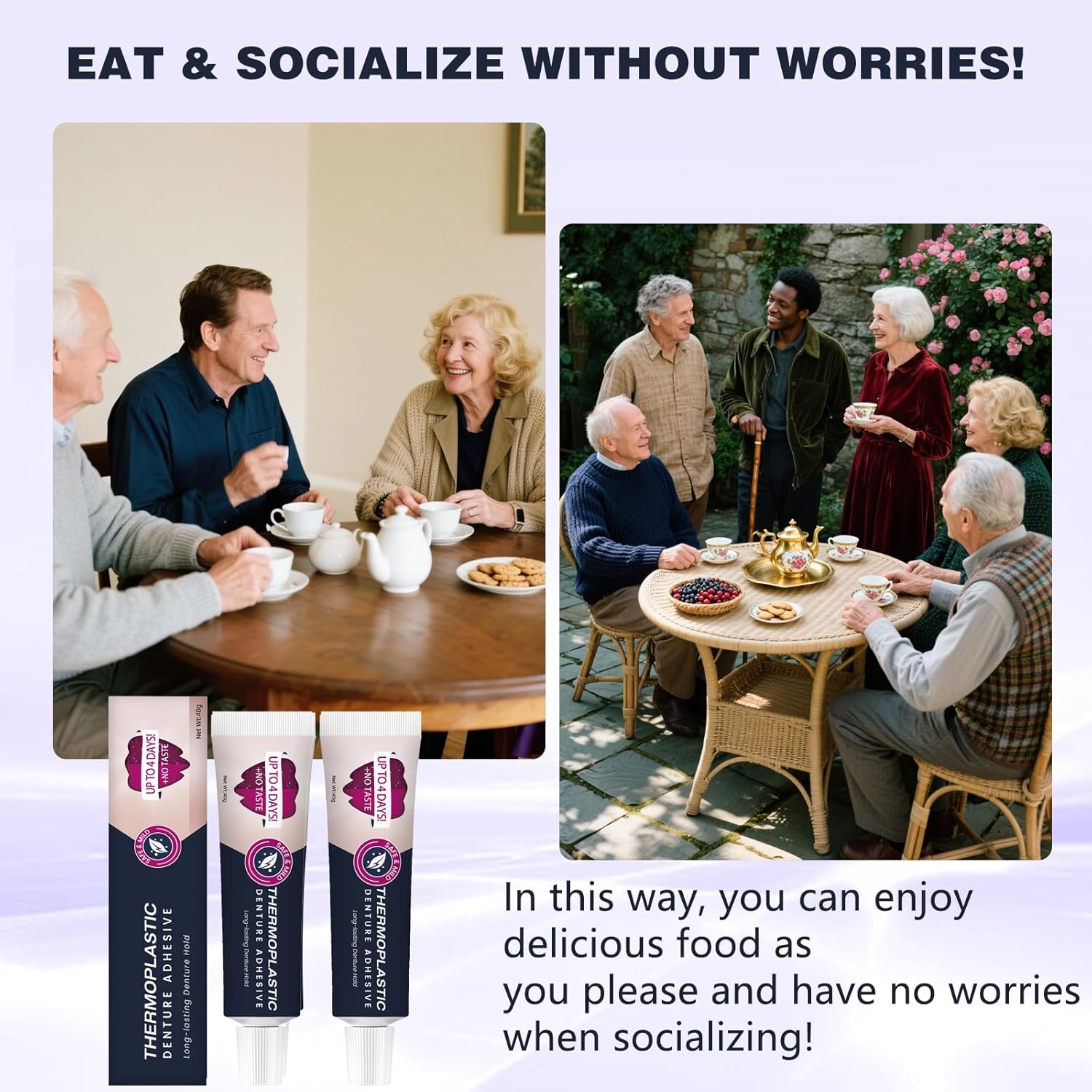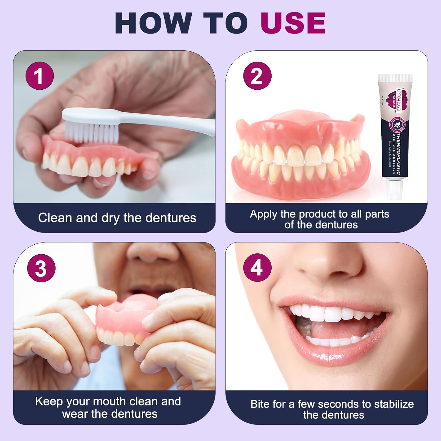 - 【Strong and stable】Strong adhesion, say goodbye to the trouble of denture sliding! Long-lasting and stable for more than 4 days, Let you chew confidently, talk and laugh happily, without worrying about embarrassing falling off