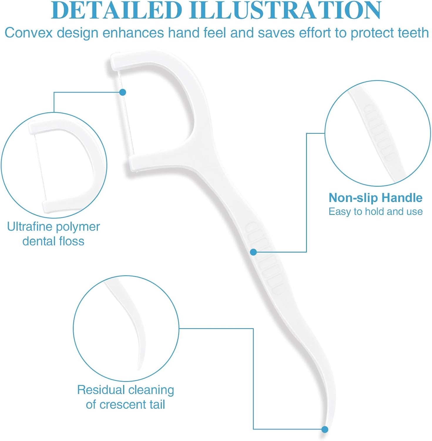 - 【2-in-1 Design】 The dental flossers head can be used as regular dental floss, and the tail can be used as a traditional toothpick. Multiple cleaning methods are optional to maintain oral health.
