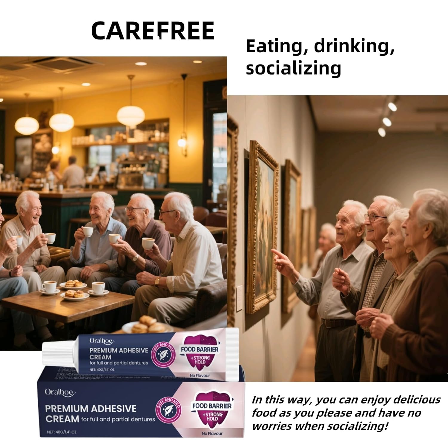 - - Comfortable Wear: Crafted with gentle ingredients in scientifically calibrated proportions, it won’t harm dentures or gums. Odor-free, it doesn’t interfere with your sense of taste during meals. Plus, it eases pain and irritation from denture wear, enhancing overall comfort.