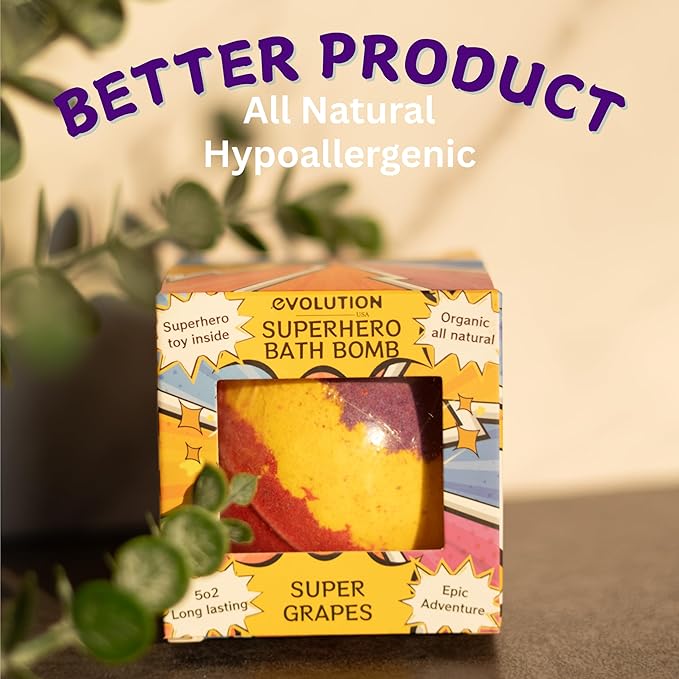 - Superhero Theme Kid Bath Bomb with Surprise: Exciting bath bomb with superhero toy. Non toxic kids bath bomb designed to be safe & fun. Our superhero bath bomb for boys with toys hidden inside make the best superhero gift. Kids love discovering an epic super hero character bath toy is found in each fizzy bathbomb.
