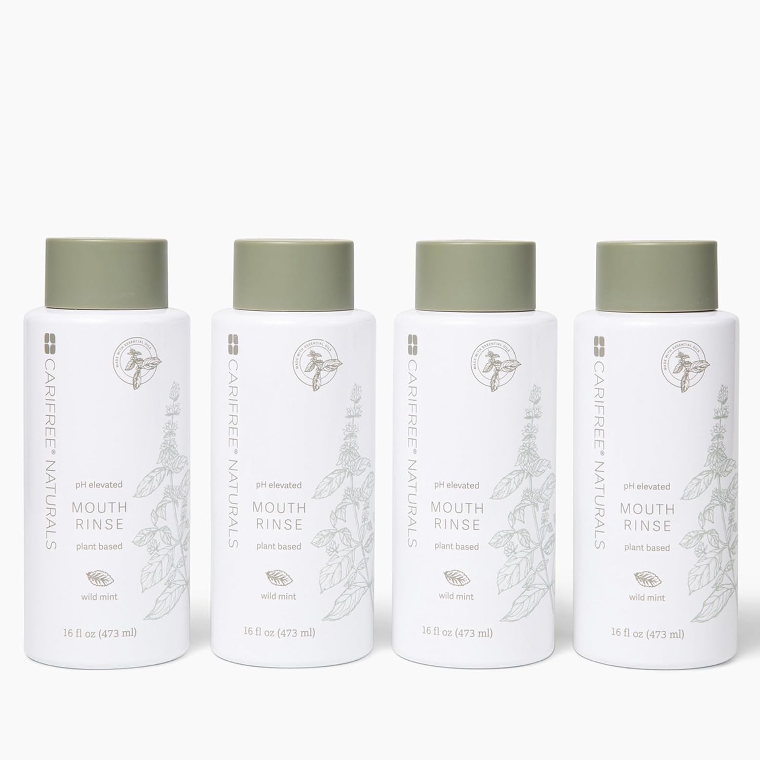 CariFree Naturals Mouth Rinse | pH Elevated, Fluoride-Free, with Magnolia Bark & Essential Oils, Organic Ingredients, Alcohol-Free, Dentist Recommended,Dentist Developed Wild Mint, 16 fl oz, Pack of 4