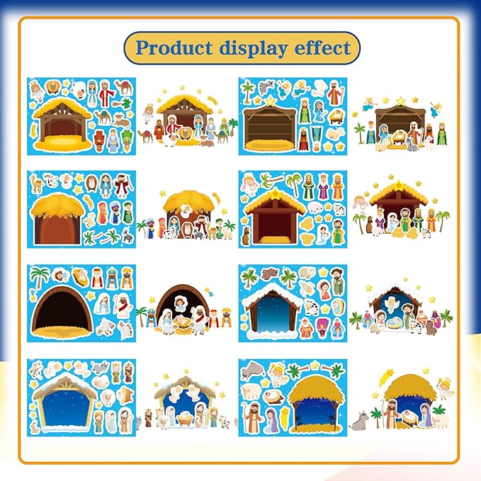 - Easy Assembly: Pre-cut stickers peel and stick effortlessly, allowing children to create their own nativity scenes without mess or difficulty