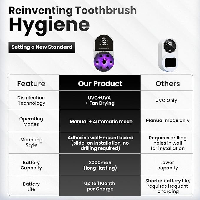 - UV Light Cleaning with Warm Air Drying Dual toothbrush UV sanitizer holder uses UV-C light cycles combined with a fan to accelerate air circulation to help reduce buildup and dry bristles for a fresher brush every time.