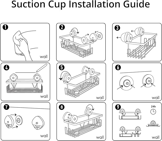 - Effortless Tool-Free Installation:This product is not glue-based—the adhesive layer only enhances suction.This suction cup shower caddy installs in seconds without any drilling, screws, or wall damage.Perfect for renters and RV users seeking a damage-free solution