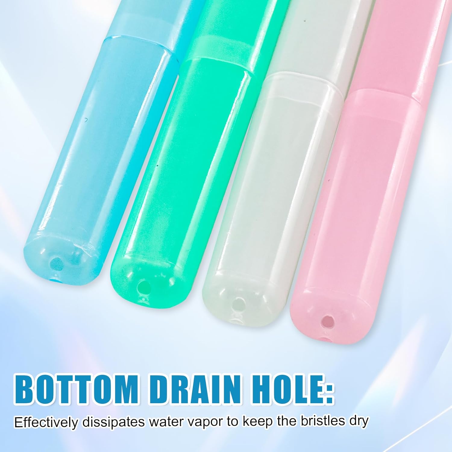 - Breathable design: The toothbrush travel case features a smooth and transparent body, allowing you to quickly identify the contents inside. The tooth brush holder for travel has a comfortable touch and a dual-hole design at the bottom that promotes air circulation, keeping your toothbrush dry and fresh. The tooth brush travel case is not only functional but also stylish, adding a touch of elegance to your travel essentials.