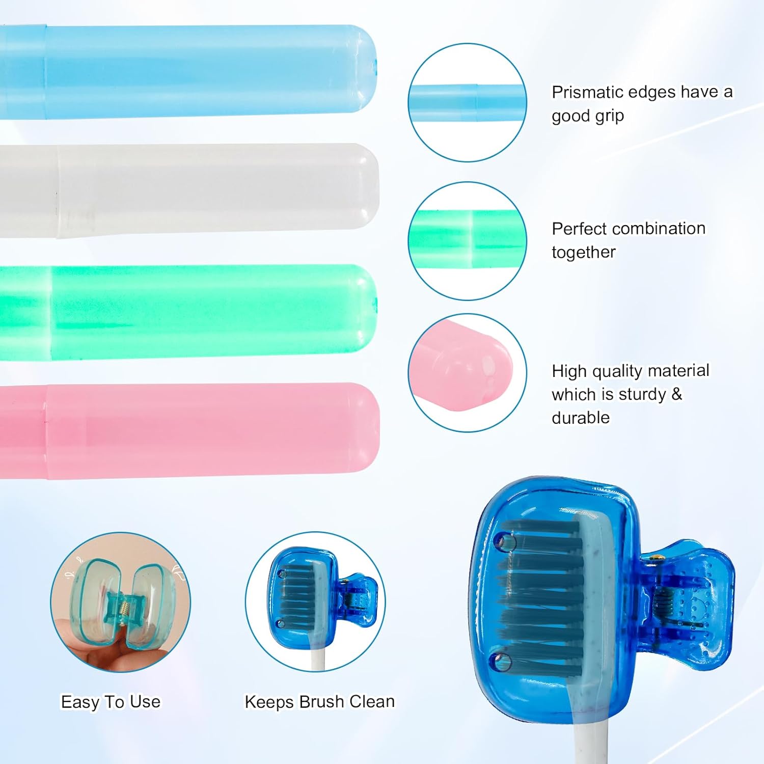 - Product Contains: This set includes 4 toothbrush covers and 4 travel toothbrush cases, designed to accommodate most standard toothbrushes. The toothbrush cover cap and case work together to help keep your toothbrush clean and protected while traveling, offering practical convenience for trips.