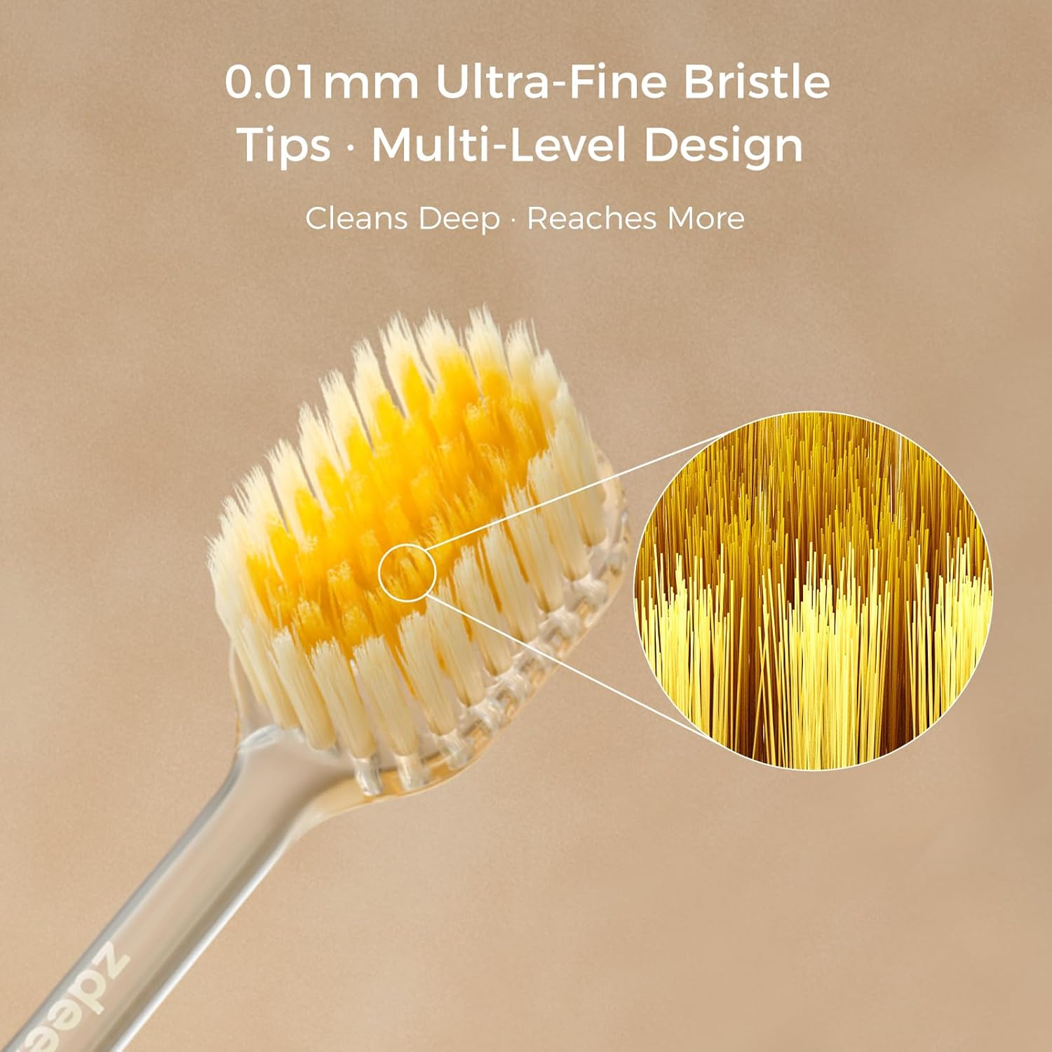 Ultra Soft Manual Toothbrushes for Adults Sensitive Gums– Eco-Friendly Aluminum Alloy+ABS Handle with 3 Replaceable Gum Care Heads, Gentle Wide Bristles for Sensitive Teeth & Gums
