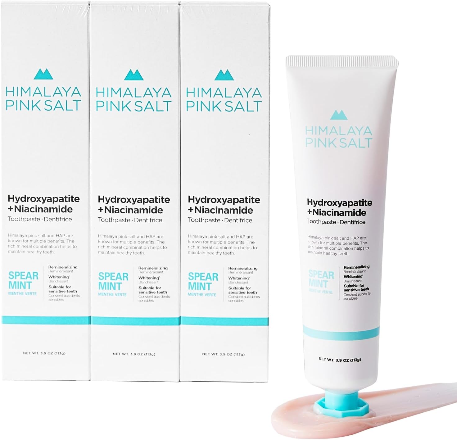 HIMALAYA PINKSALT Fluoride Free Hydroxyapatite Toothpaste with Niacinamide, Helps Remineralize, Appropriate for Sensitive Teeth, Teeth Whitening - for Adult, Kids Oral Care - Spearmint Flavor, 3.9 oz