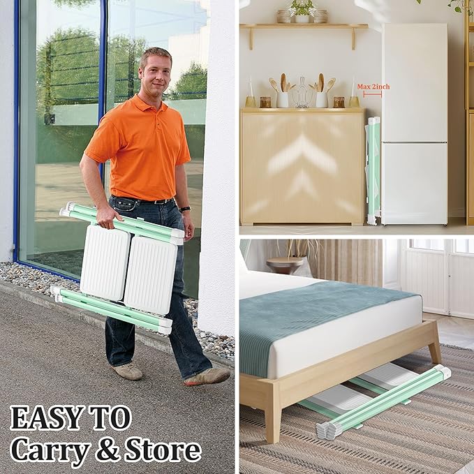 - Portable and Space Saving: This folding step stool folds to just 2 inches, making it easy to store against walls, in corners, under beds, or in closets. Made from high-quality lightweight steel, it's easy to carry with just one hand.